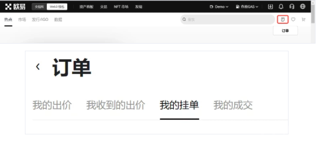 4、完成上架后,您可以前往订单中心【我的挂单】查看当前在售的 NFT。