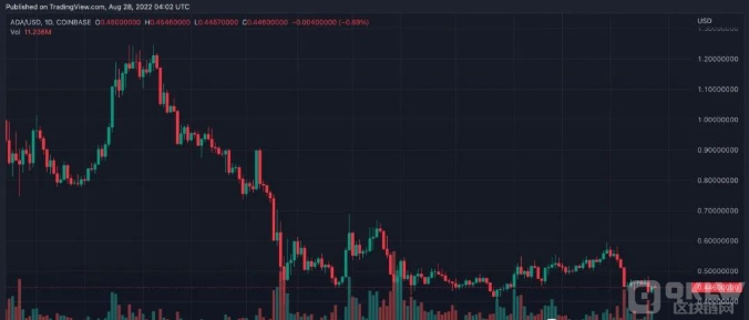 当时ADA 的价值为 0.44 美元。其市值为151亿美元,24小时交易量为5.58亿美元。过去 7 天的贬值幅度也略低于 1%。
